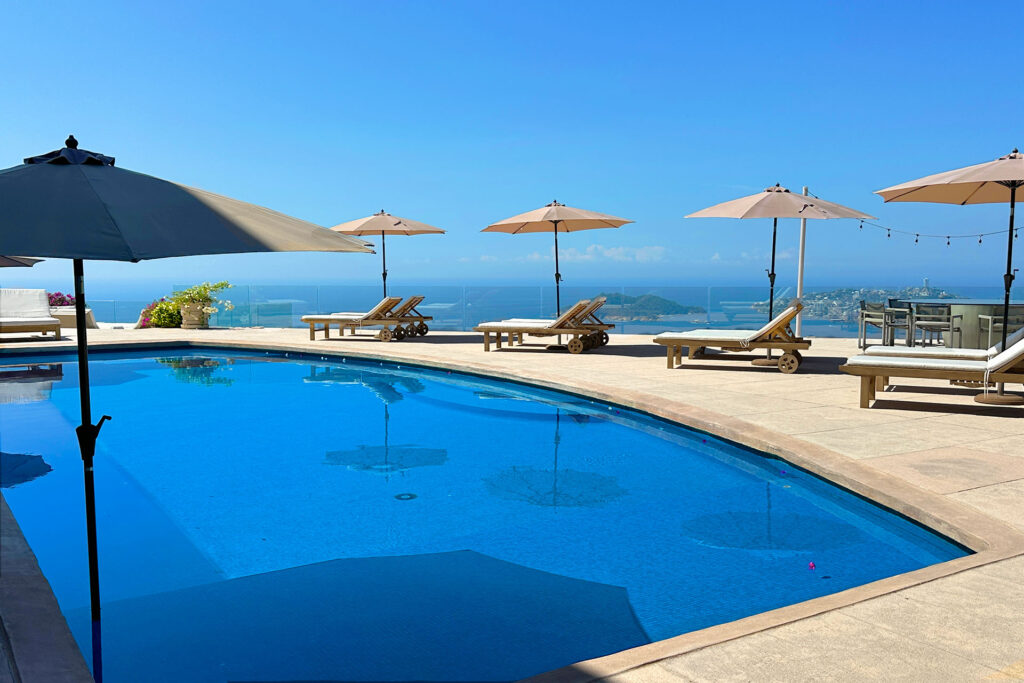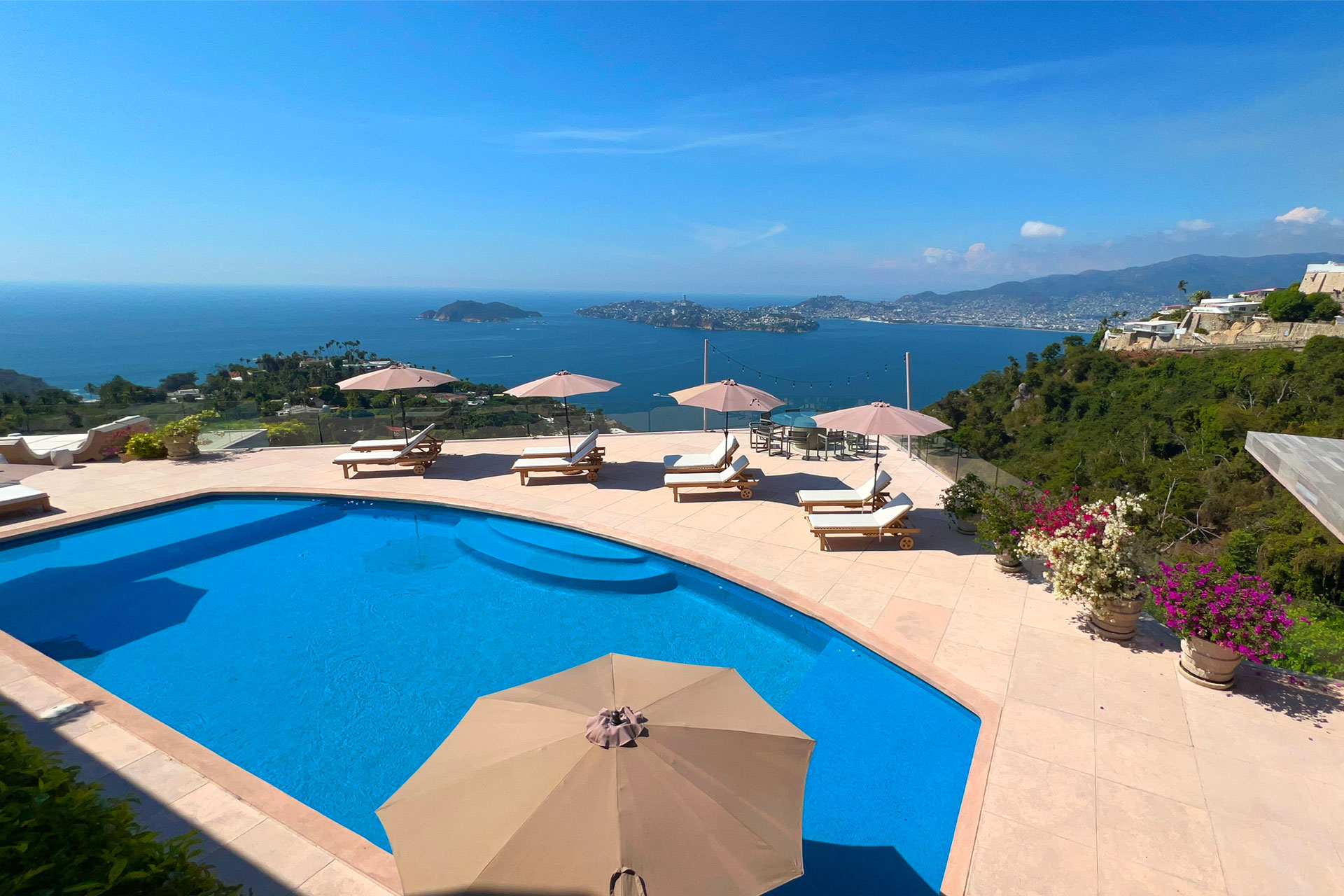 • Amplio asoleadero con tumbonas y vista a toda la bahía de Acapulco.