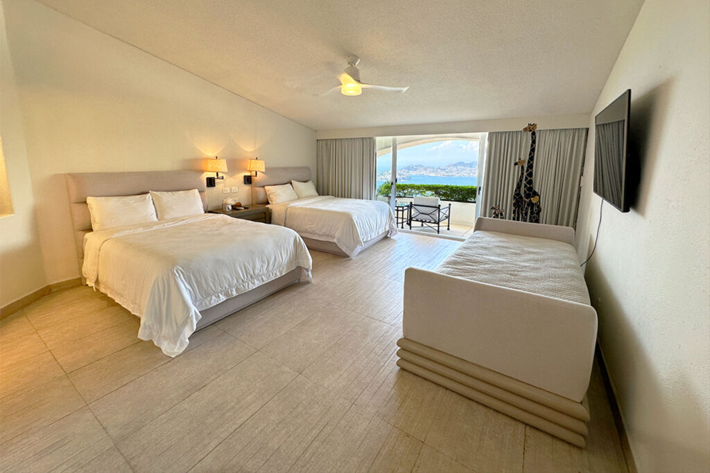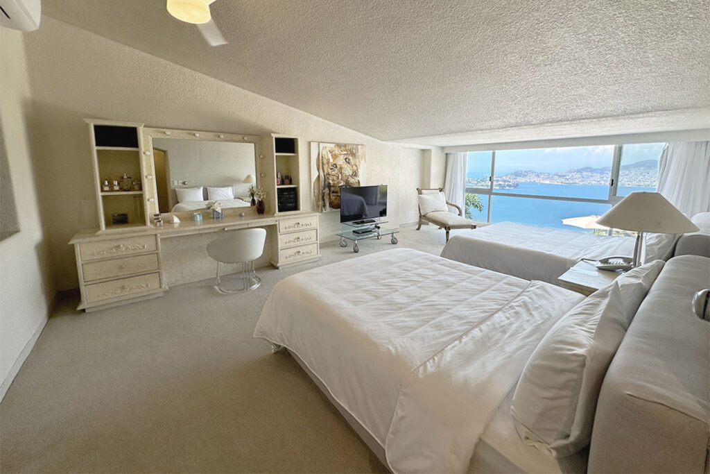 • Amplia, cómoda y moderna sala, perfecta para pasar horas disfrutando de la vista y la brisa de Acapulco.