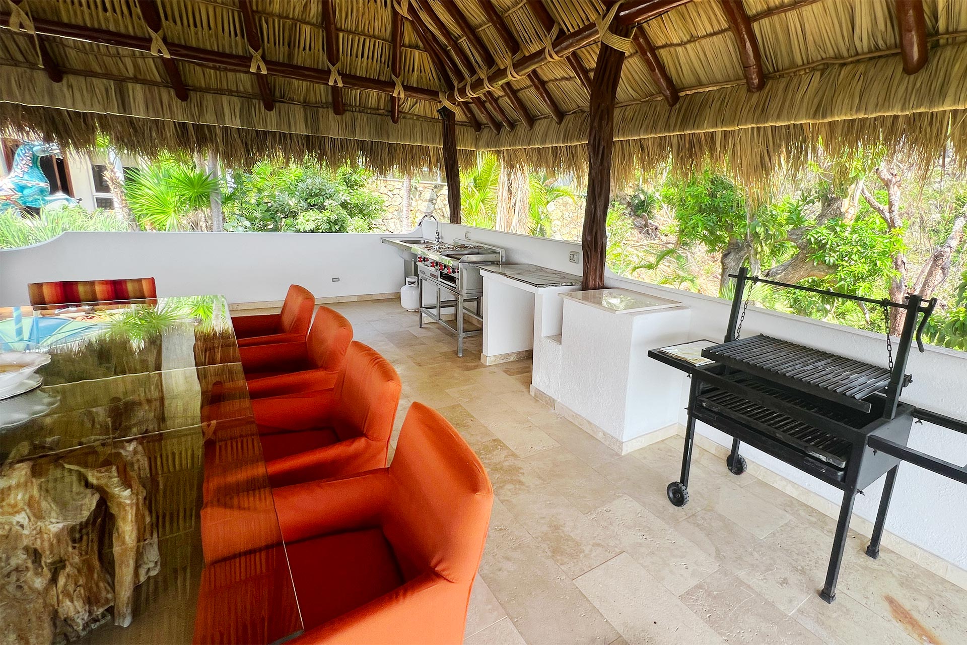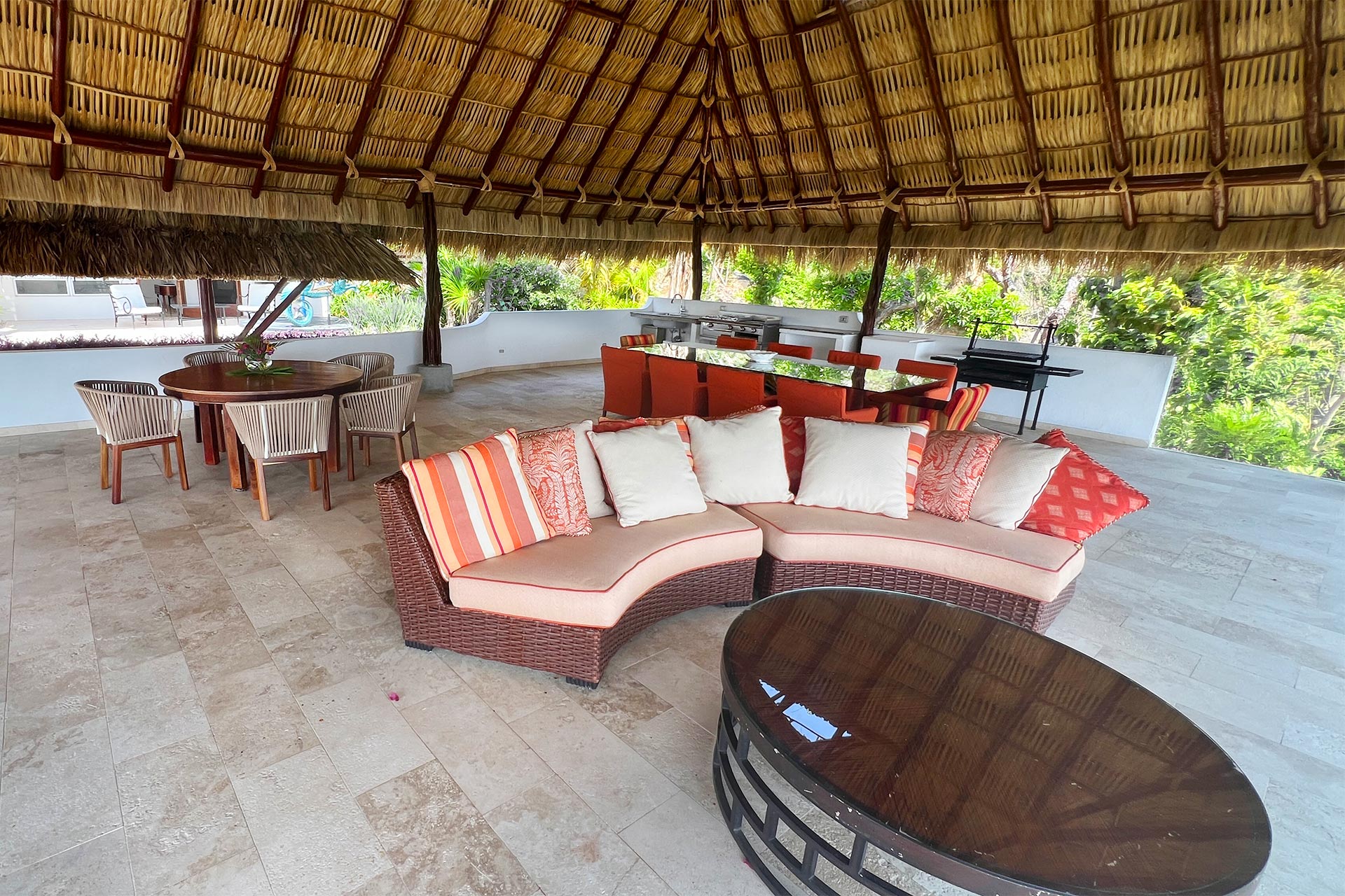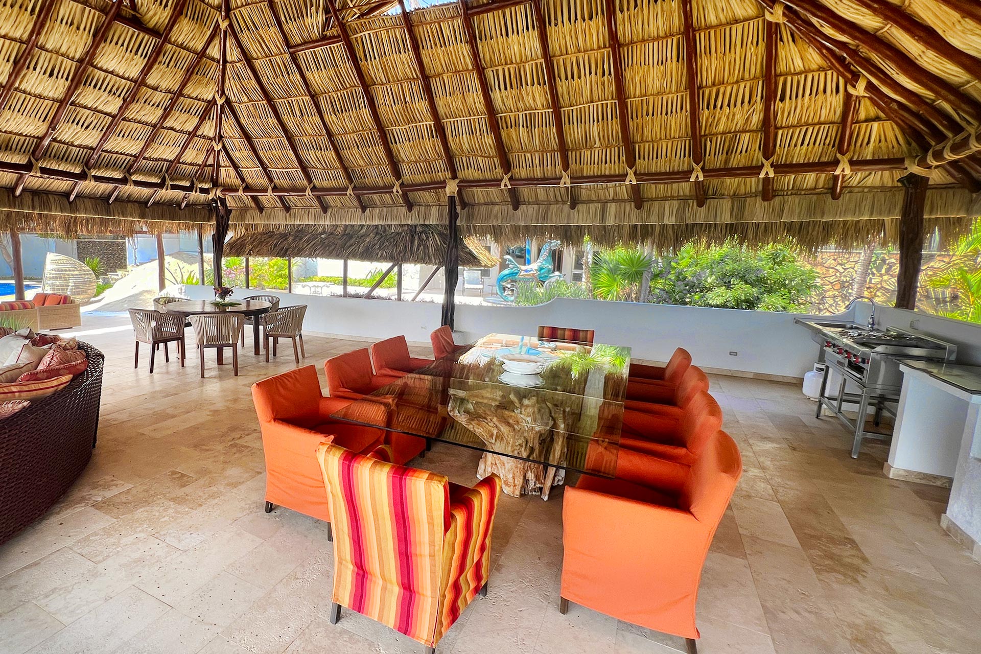 • Palapa grande con vista a la bahía, comedor para 16 personas, asador argentino, bar y amplia sala para disfrutar de la convivencia entre ustedes con la puesta del sol.