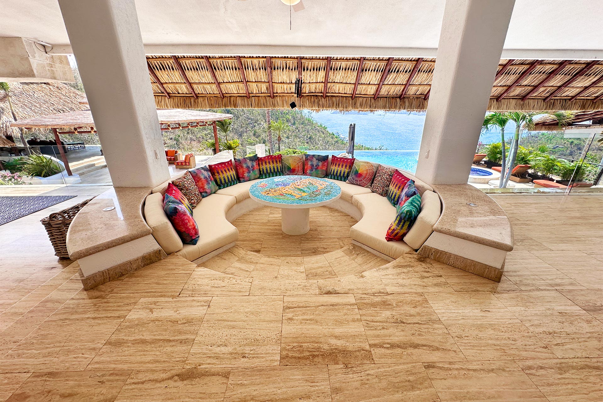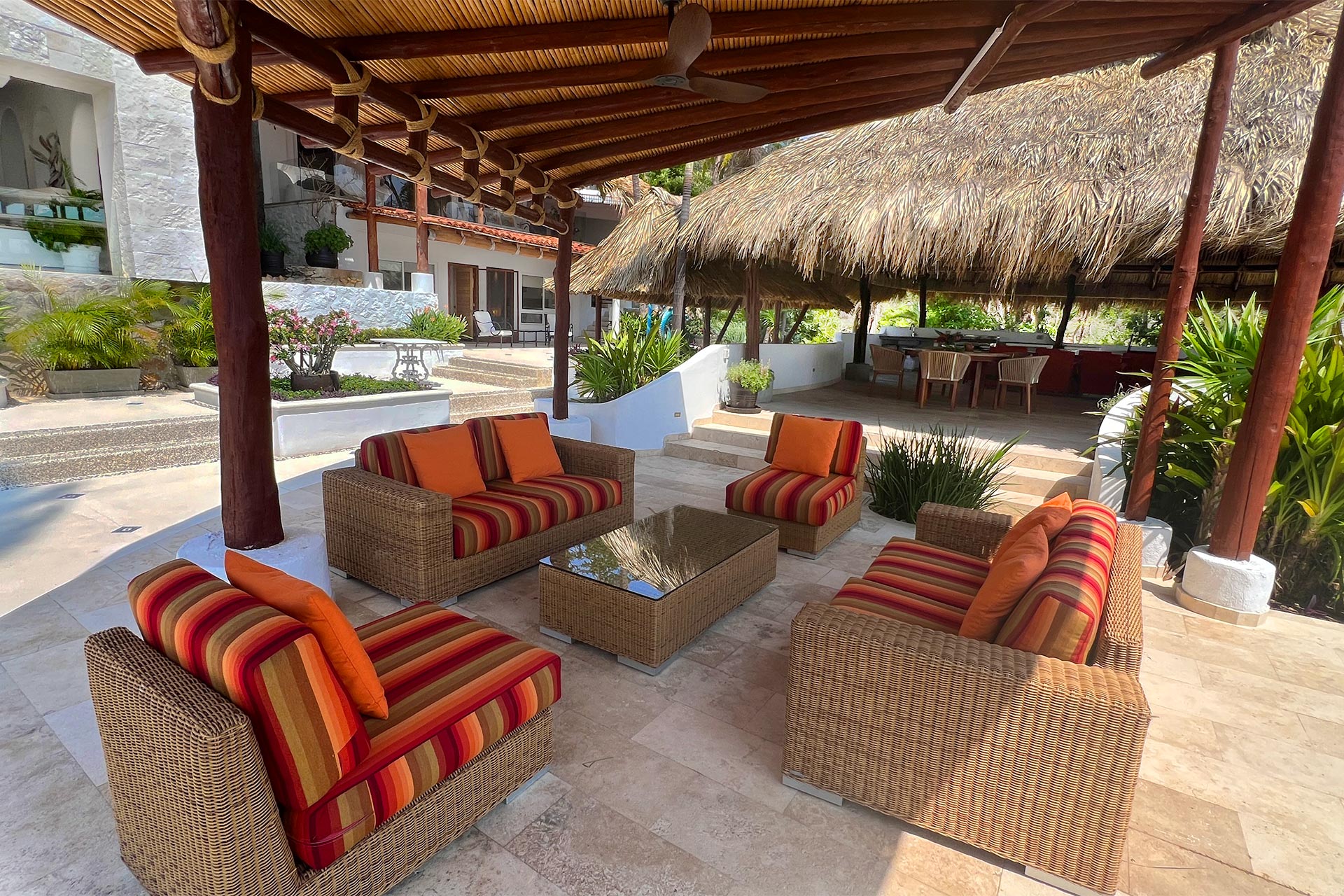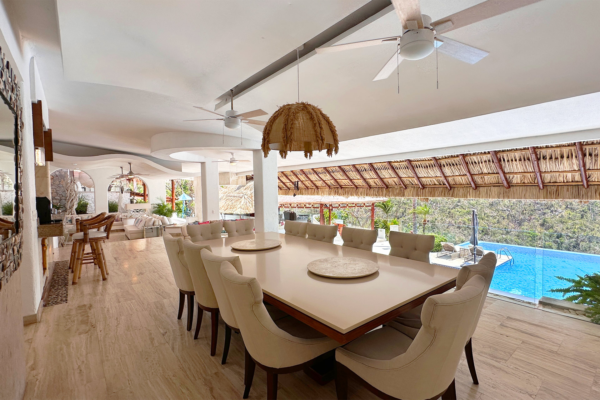 • Palapa grande con vista a la bahía, comedor para 16 personas, asador argentino, bar y amplia sala para disfrutar de la convivencia entre ustedes con la puesta del sol.